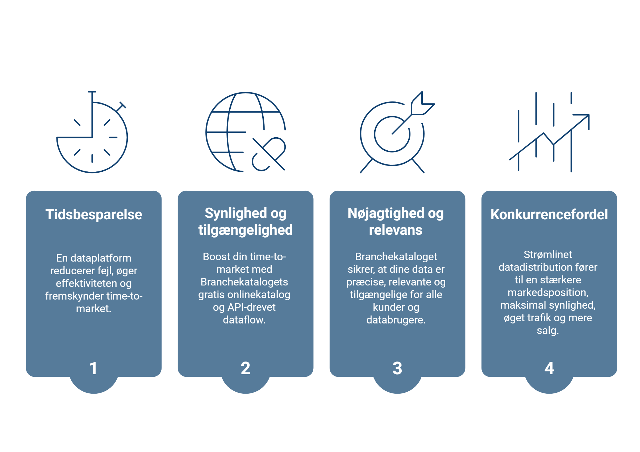 Grundlæggende kan distribuering af data via Branchekataloget bidrage til synlighed, nøjagtighed og tilgængelighed, hvilket kan føre til flere muligheder for forretning og vækst.